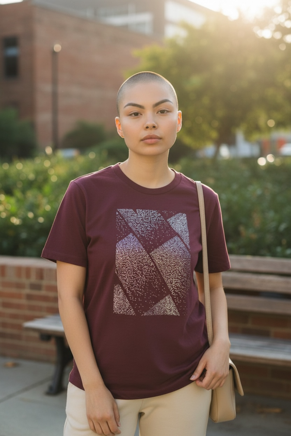 T-shirt femme avec imprimé brillant, taille L. Neuf . Matière douce et confortable. Parfait pour un look décontracté