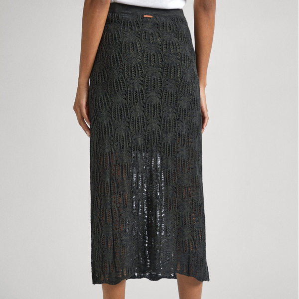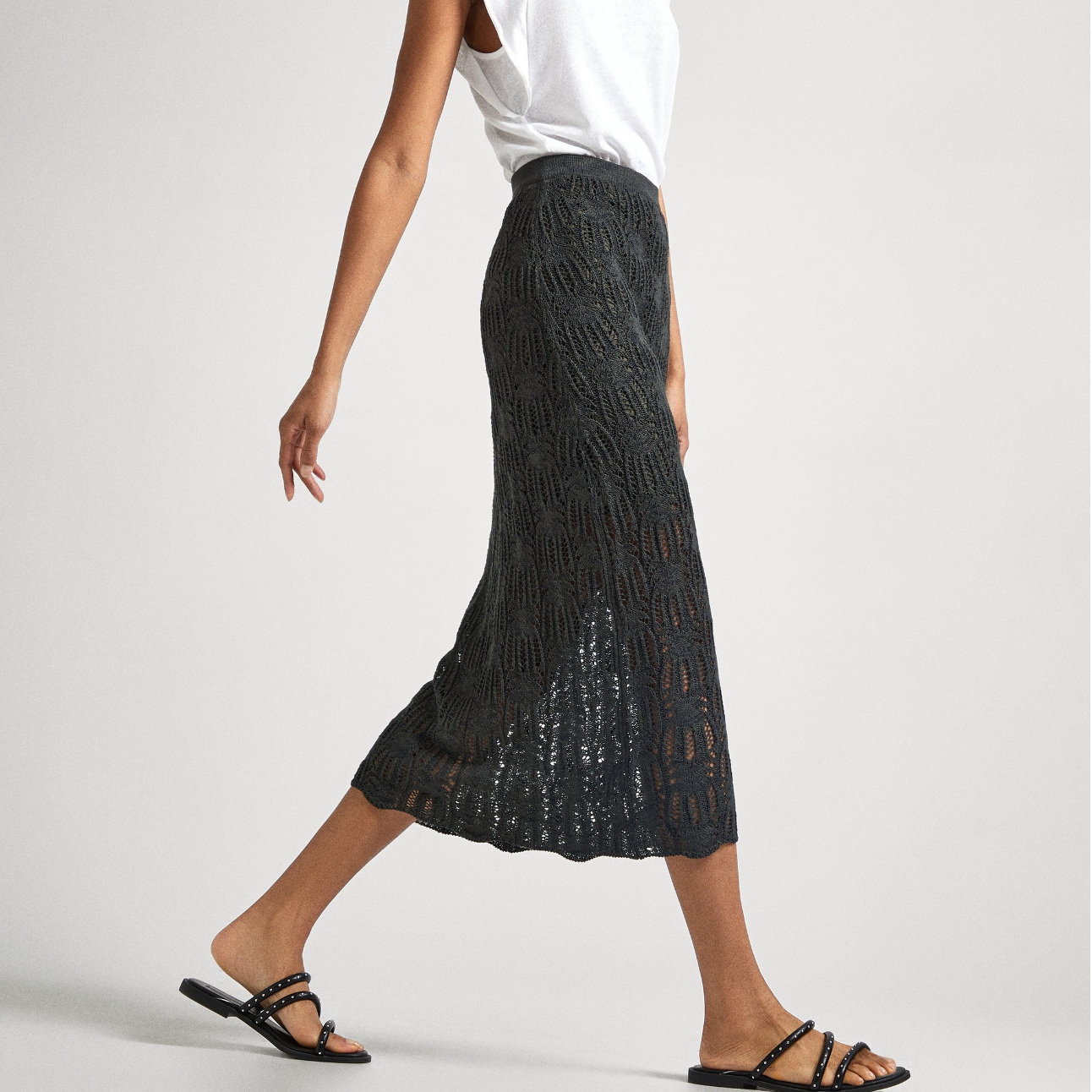Jupe longue noire ajourée. Taille haute et taille S. Neuve. Matière agréable à porter, idéale pour la mi-saison et les soirées d'été.