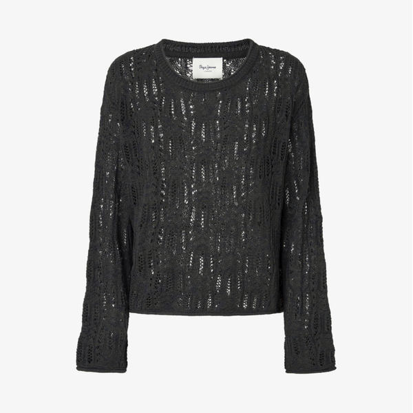 Pull noir ajouré, taille Mil est parfait pour la mi-saison. La matière est douce et agréable à porter.