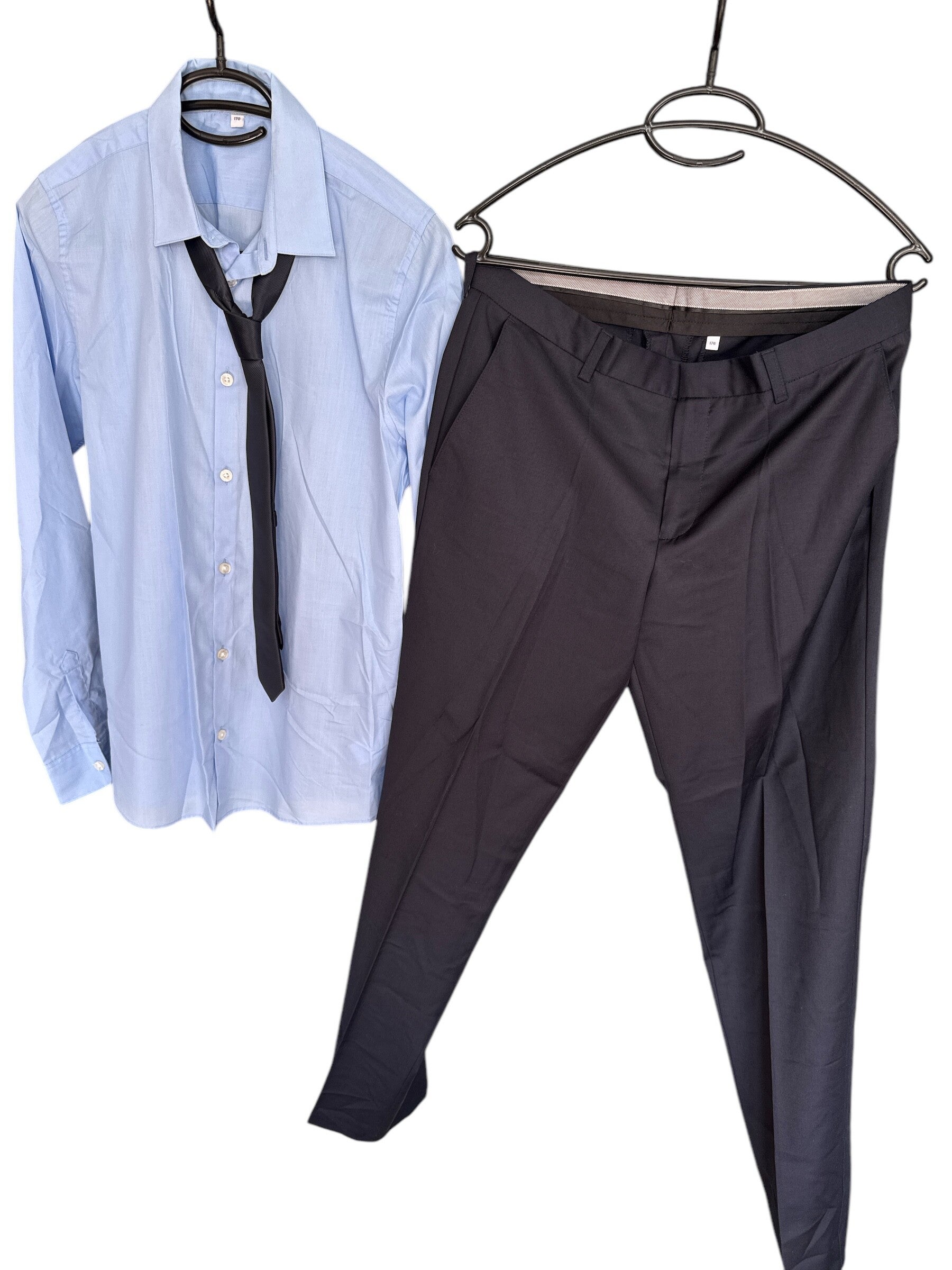 Vends costume homme élégant et moderne, idéal pour le travail ou les occasions spéciales. Veste, pantalon et chemise en excellent état, taille 176 et chemise 170. Porté quelques fois, comme neuf. La veste est cintrée et le pantalon a une coupe droite. Prix attractif.