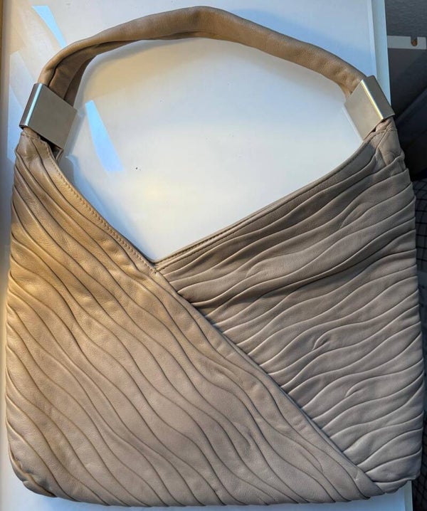 Superbe sac à main en cuir véritable de couleur beige. Design unique avec effet plissé. Marque espagnol.Porté une seule fois, il est dans un état impeccable. Intérieur spacieux avec plusieurs compartiments. Idéal pour toutes les occasions, ce sac apportera une touche d'élégance à votre tenue. Ne manquez pas cette occasion de vous offrir un accessoire de qualité.