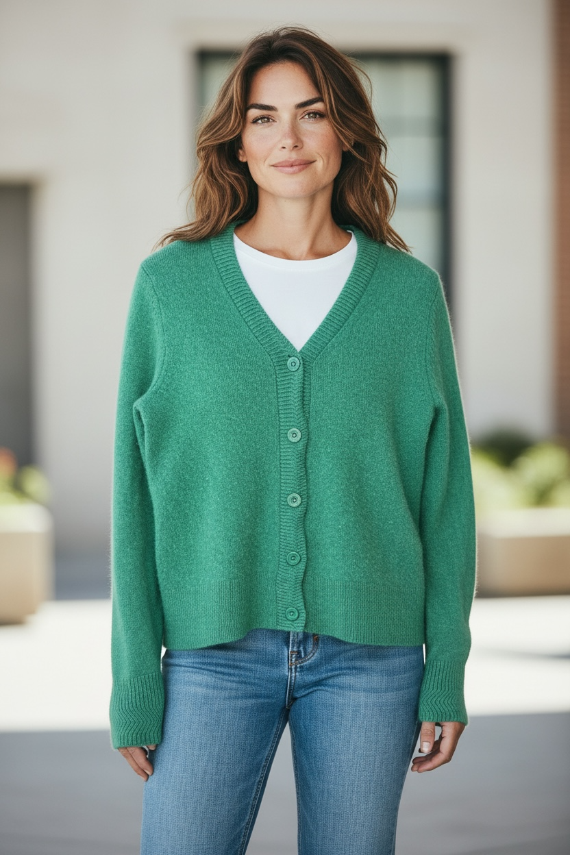 Ce gilet vert doux et confortable est idéal pour les journées d'automne. Taille S, il est en excellent état et n'a été porté que quelques fois. Sa couleur vive ajoutera une touche de gaieté à votre garde-robe. Les boutons sont en parfait état. Profitez de cette aubaine pour rester au chaud avec style pendant la saison fraîche! Matière douce et agréable à porter, 100% cachemire