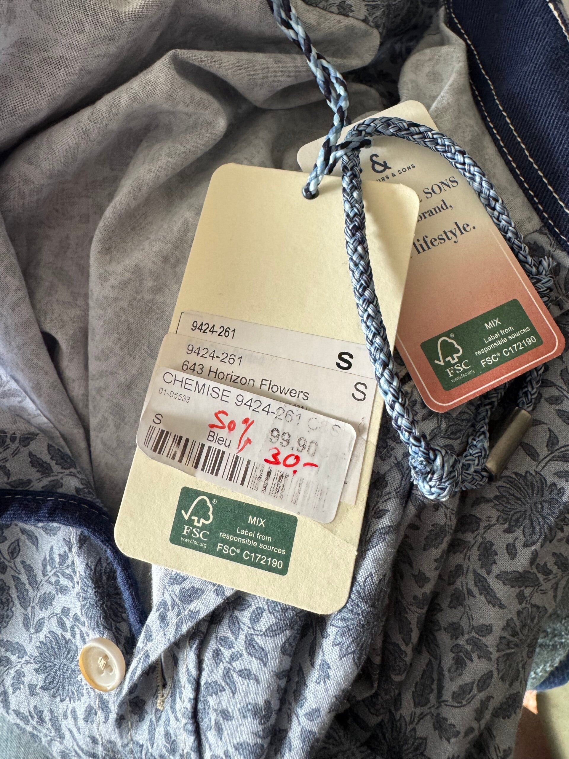 chemise homme Colour&sons, taille S. Motifs discrets, idéale, coupe moderne et confortable. Matière légère et agréable à porter, parfaite pour les beaux jours.