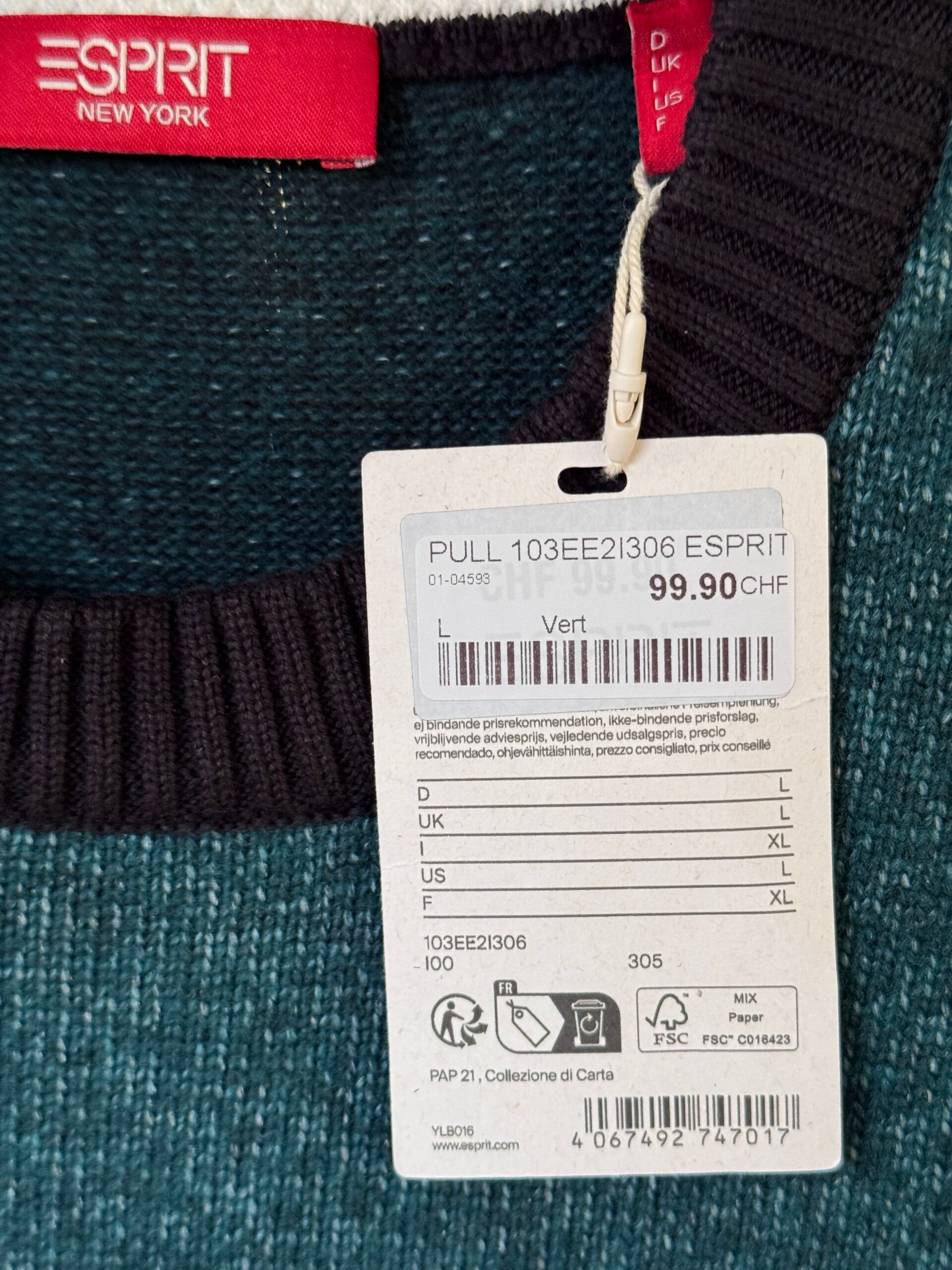 Esprit pull homme, taille XL, il vous gardera au chaud lors des journées fraîches. Sa couleur originale et son design soigné en font un vêtement polyvalent qui s'adaptera à toutes vos tenues. Ne manquez pas cette occasion de vous offrir un pull de qualité à petit.