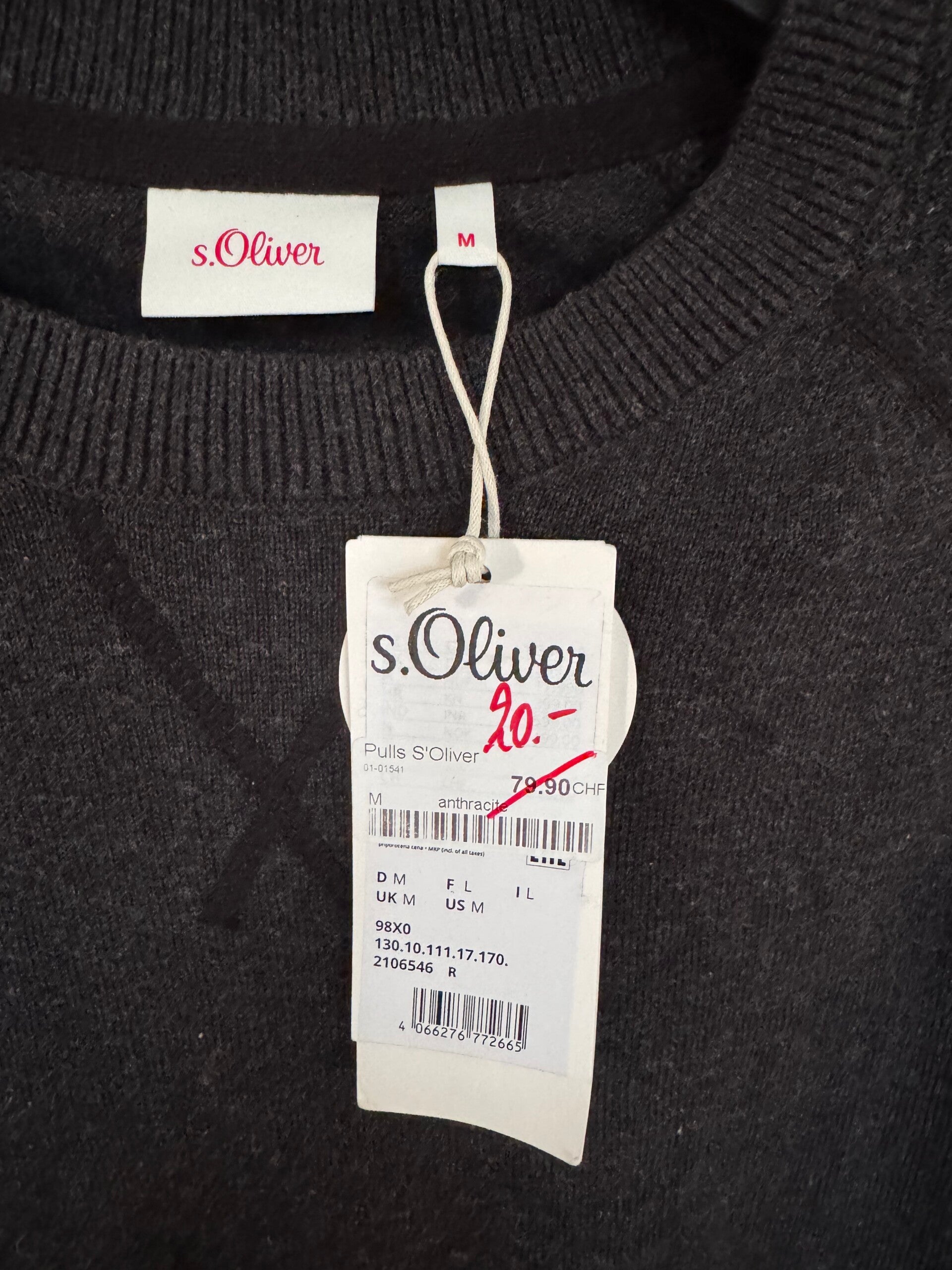 Ce pull s.Oliver est idéal. Sa couleur gris foncé est facile à assortir. En taille M, il convient à la plupart des hommes. Un basique de garde-robe à petit prix!