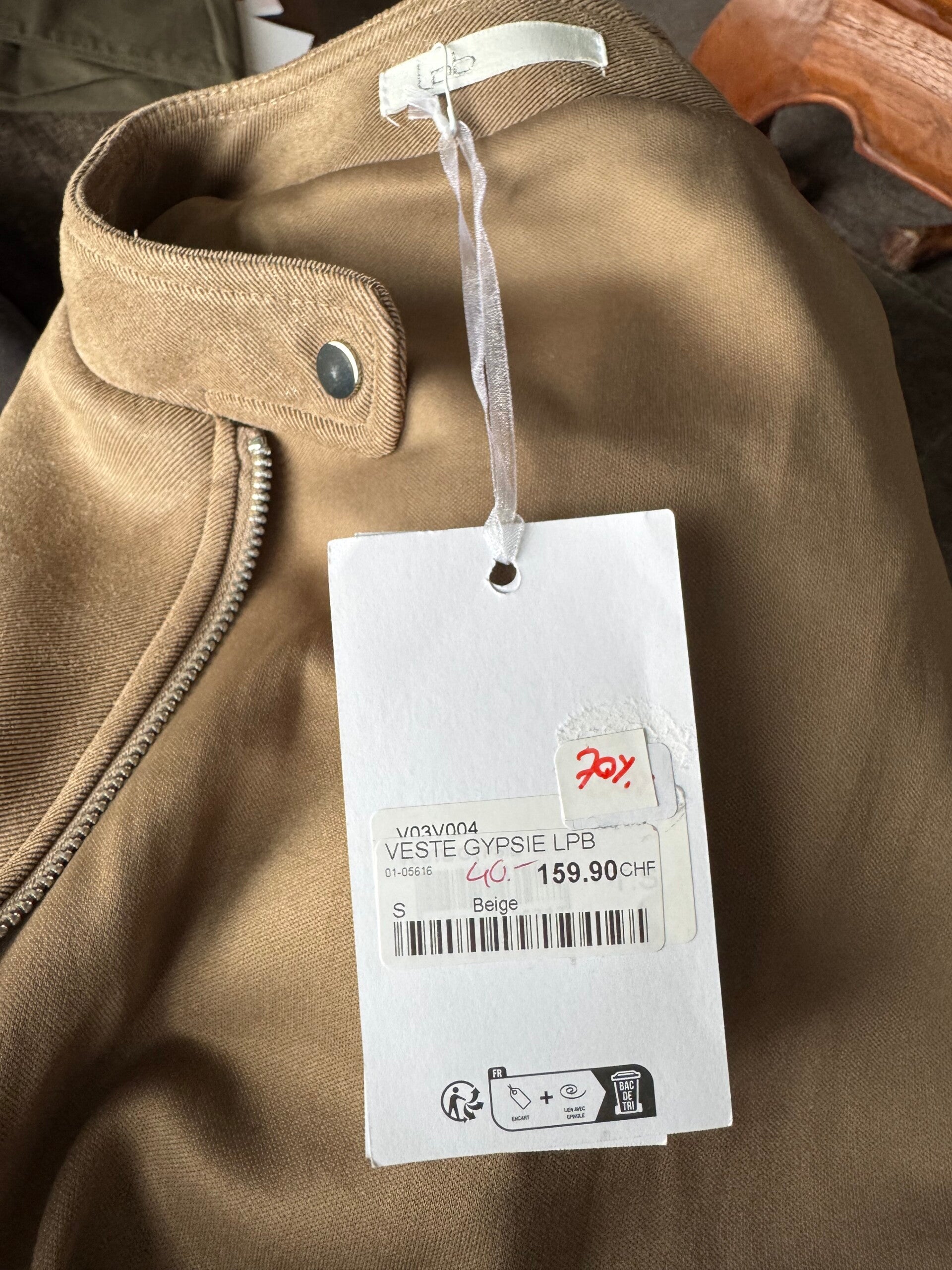 Magnifique veste beige, idéale . Taille S, coupe moderne et élégante. Fermeture éclair, poches pratiques. Une pièce intemporelle qui ajoutera une touche de style à votre garde-robe. Ne manquez pas cette occasion de vous offrir une veste de qualité à petit prix! Parfaite pour toutes les occasions, décontractées ou plus habillées.