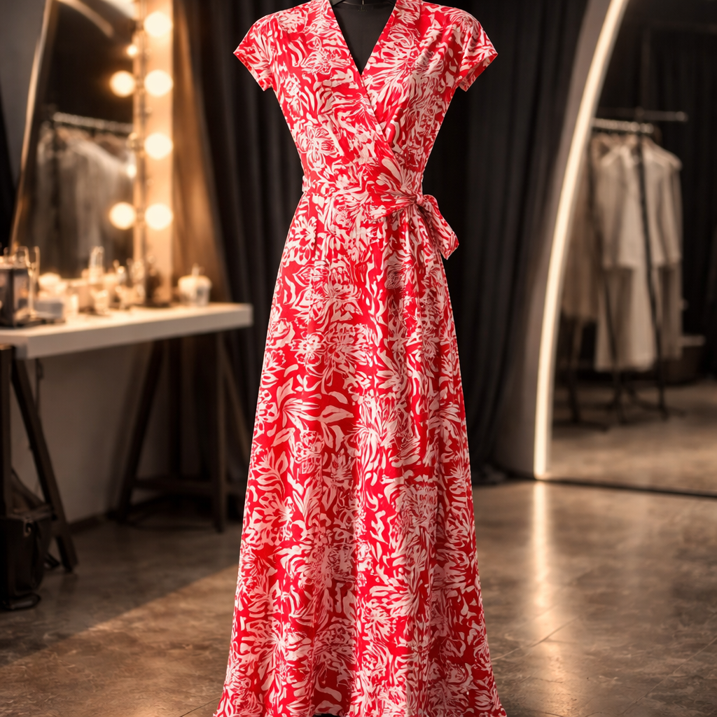 Cette robe rouge vif, avec son motif floral charmant, est parfaite pour vos journées ensoleillées. Taille 34, elle est légère et confortable, idéale pour flâner ou pour une soirée décontractée. La ceinture intégrée met en valeur la silhouette.