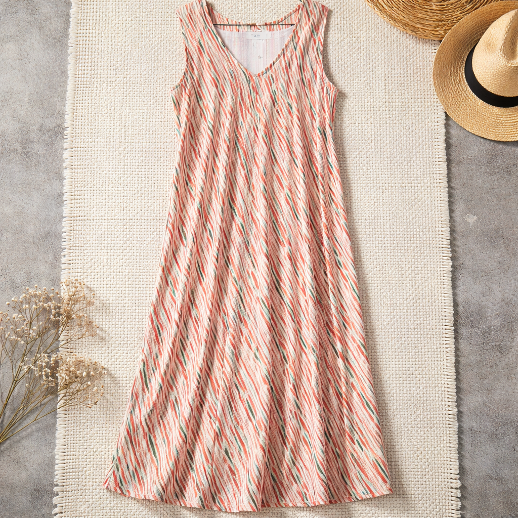 Cette robe d'été stylevintage est idéale pour les journées chaudes. Avec son motif rayé coloré et sa coupe confortable, elle est partaite pour la plage ou une promenade en ville. Taille XXL. Un incontournable pour votre garde-robe estivale! Légère et agréable à porter, elle vous accompagnera partout pendant vos vacances.