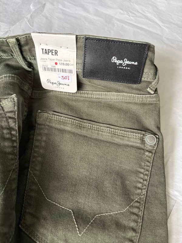 Ce pantalon homme de couleur vert kaki est parfait. Coupe droite classique, taille 28/32.