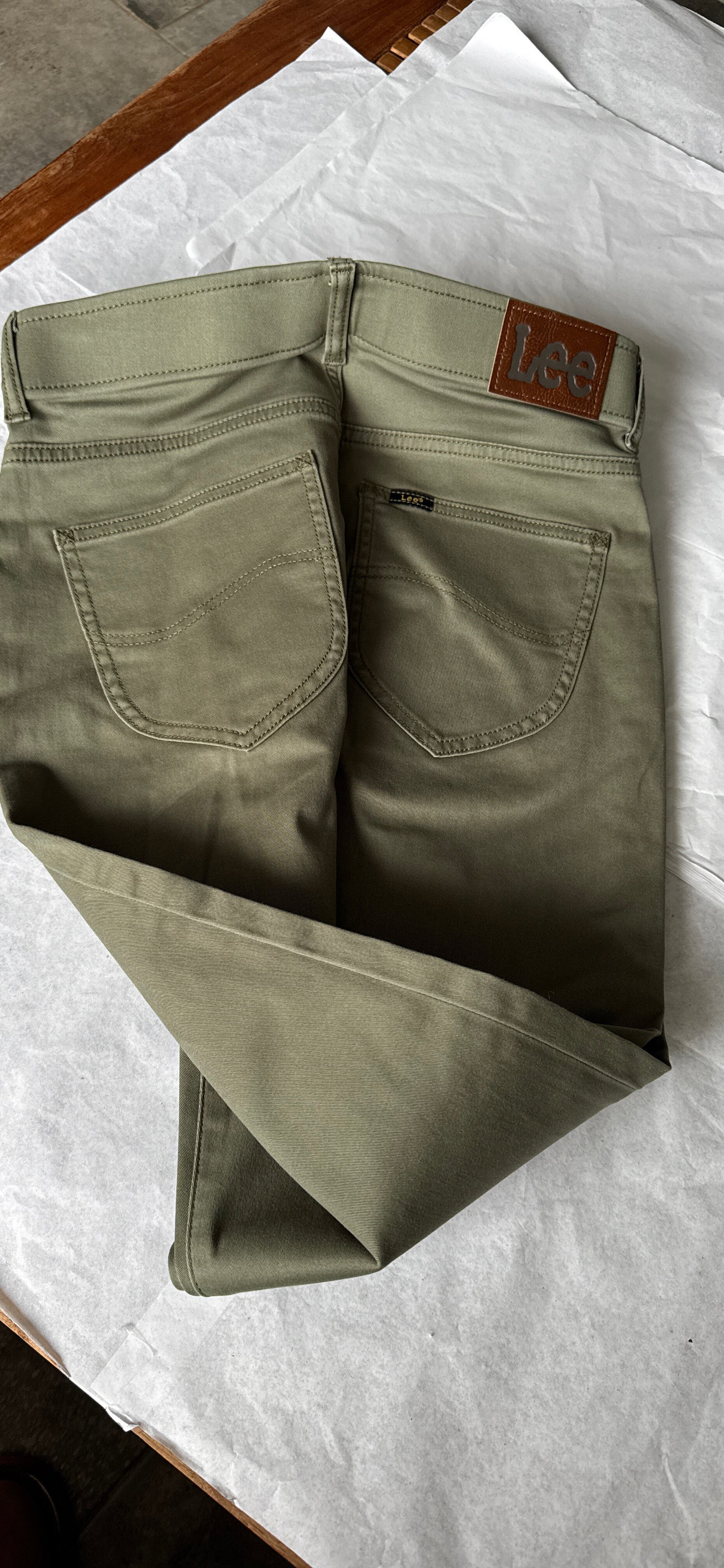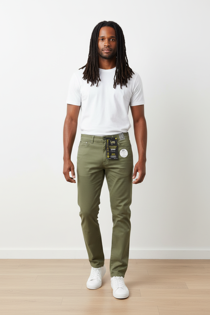 Ce pantalon Lee de couleur vert olive est parfait pour la saison! Neuf, jamais porté et encore avec son étiquette, il est en taille 30/34, Idéal pour un look décontracté mais stylé.