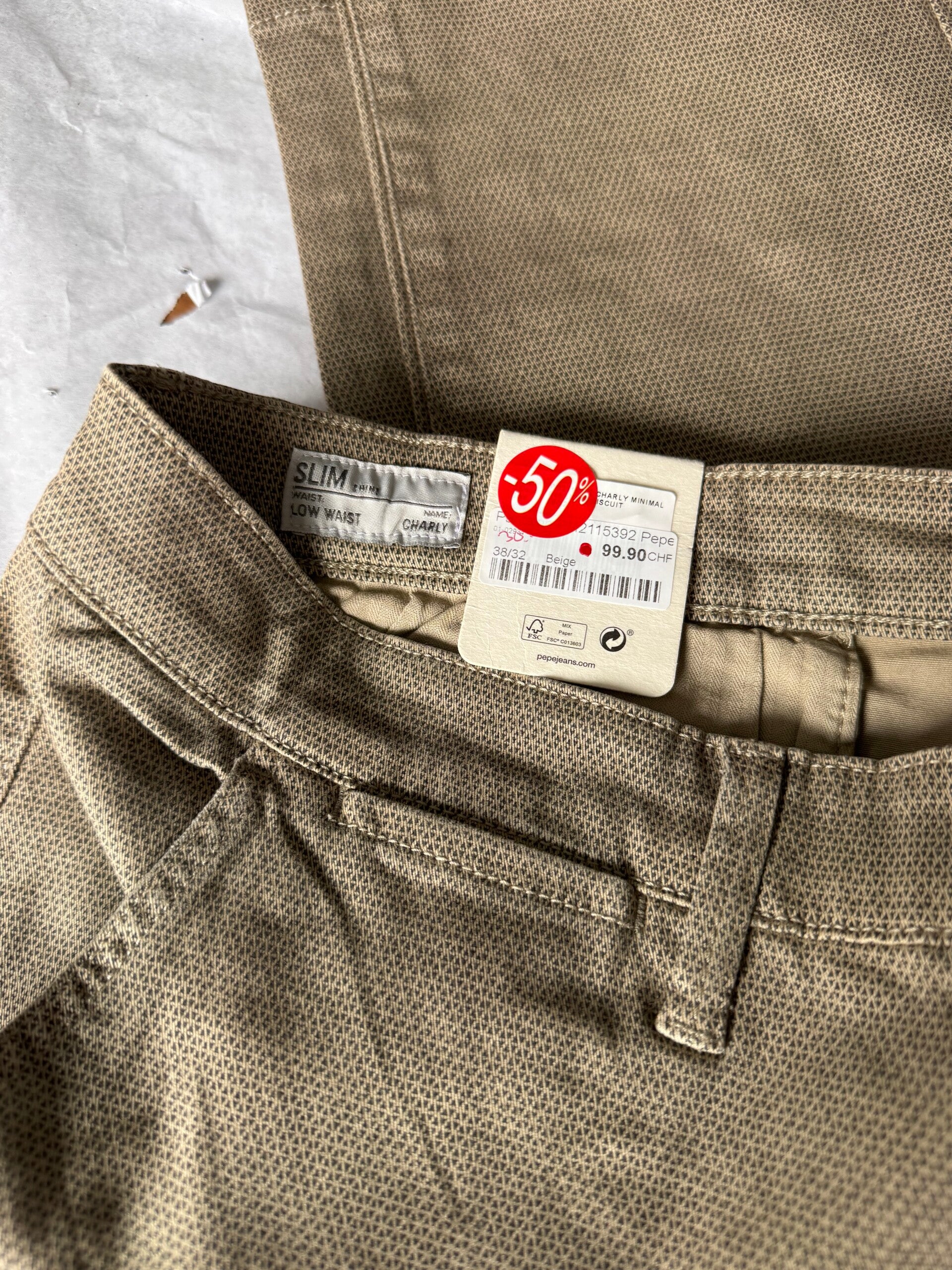 Ce pantalon Pepe Jeans, modèle Charly Slim, est tout neuf avec son étiquette.