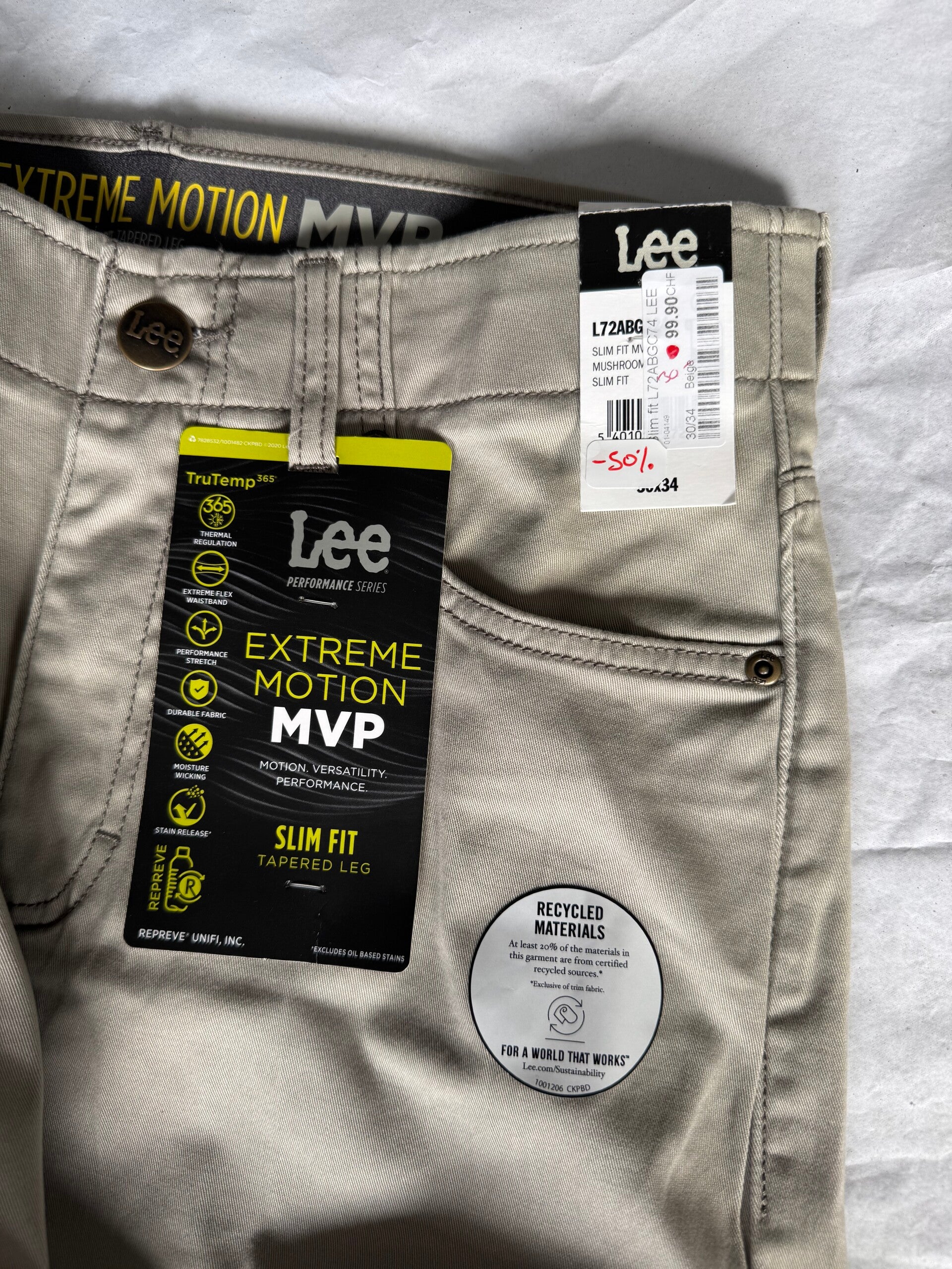 Ce pantalon Lee MVP Extreme Comfort est neuf avec étiquettes. Taille 30/34.