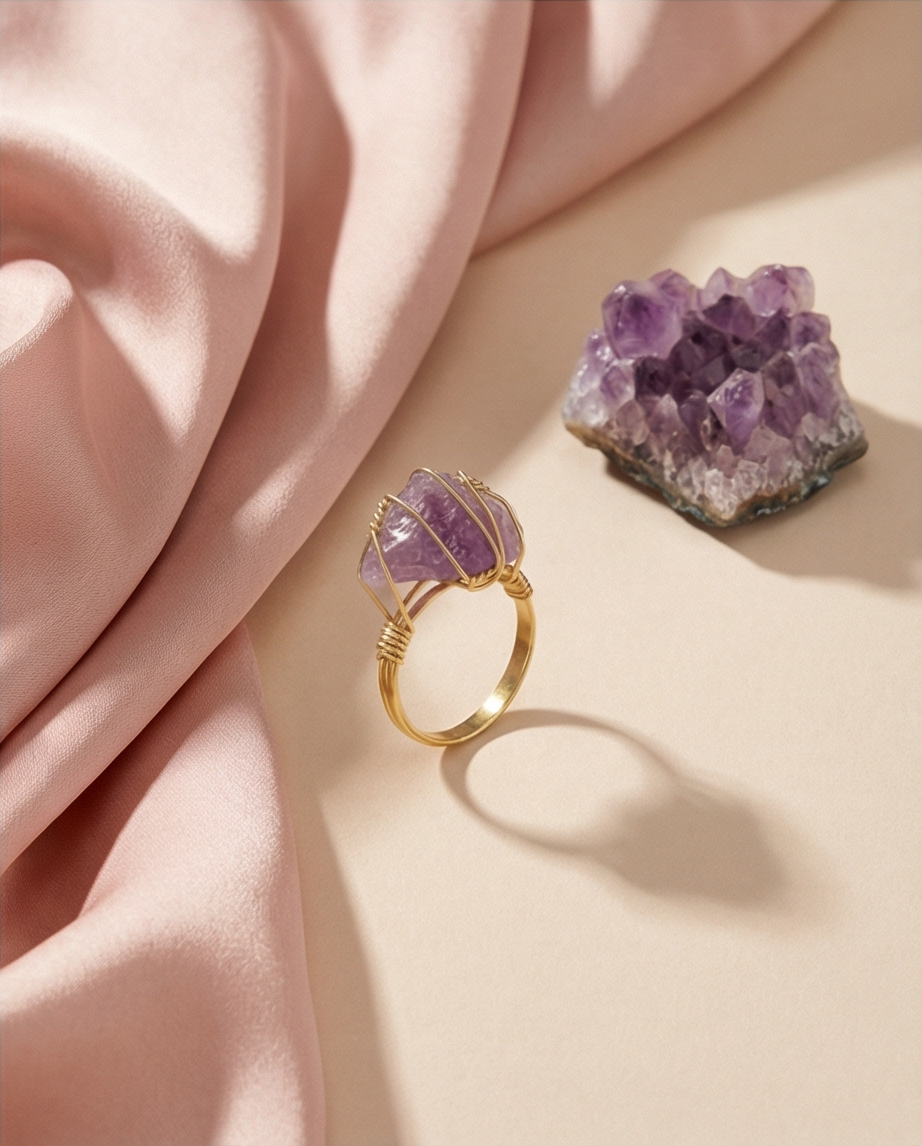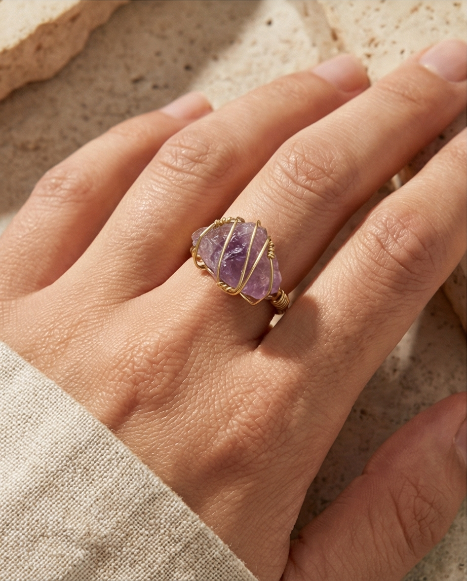 Dites adieu au stress avec style ! ✨ Notre bague améthyste ajustable est la touche magique qu'il vous faut. Craquez maintenant ! 💜#bijouxcreateur #améthyste #tendance #stressrelief #shopping