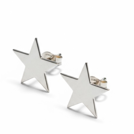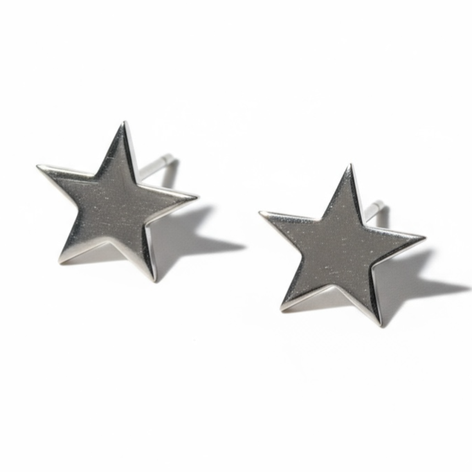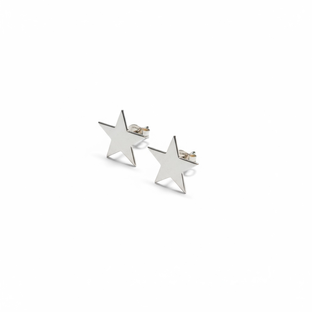Boucles d'oreilles en forme d'étoiles argentées. Elles sont simples et élégantes, parfaites pour un look décontracté ou habillé.